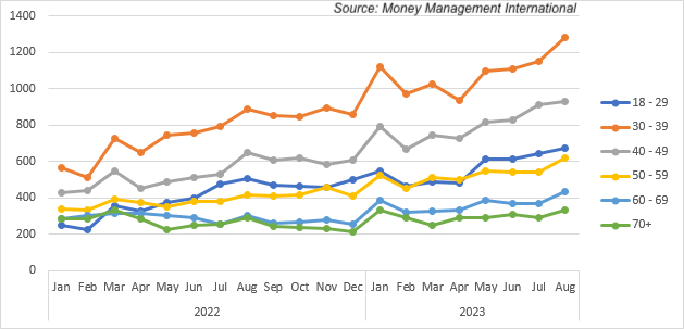 The data shows that the average number of clients seeking help from MMI increased by 40% in August 2023 from August last year. This increase was seen in all age groups, with the largest increase seen from January to August 2023 among those aged 18-29 (56%).